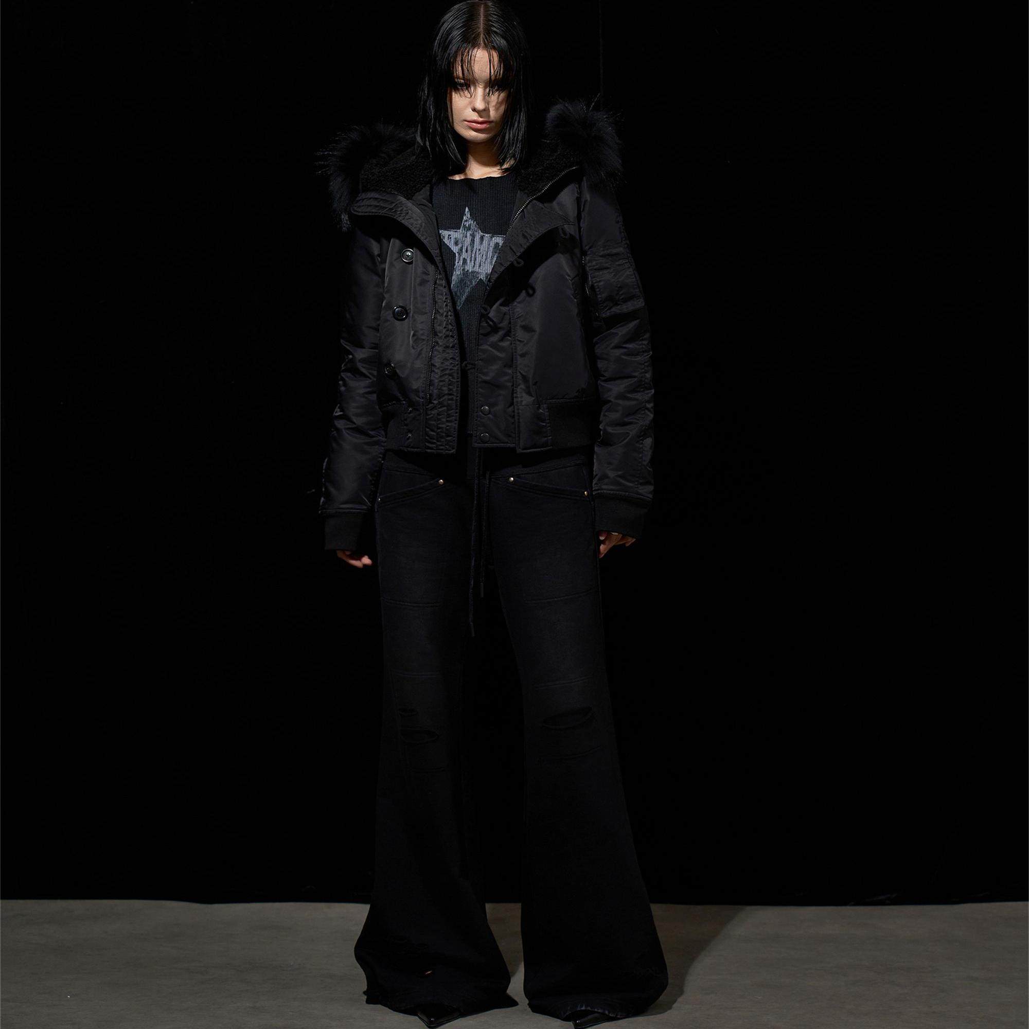 Stay warm and stylish with Wcoumq’s slim-fit black N2B flight jacket, featuring a luxurious raccoon fur hood for added elegance and protection against the cold. Crafted from high-quality cotton, this bomber jacket provides both comfort and durability, making it perfect for the fall and winter seasons. The slim fit design ensures a flattering silhouette, while the hooded feature adds an extra layer of warmth and style. Whether you're heading to a casual outing or braving the winter chill, this versatile jacket will keep you cozy and fashionable. Pair it with jeans for a laid-back look or with a skirt for an edgier vibe.