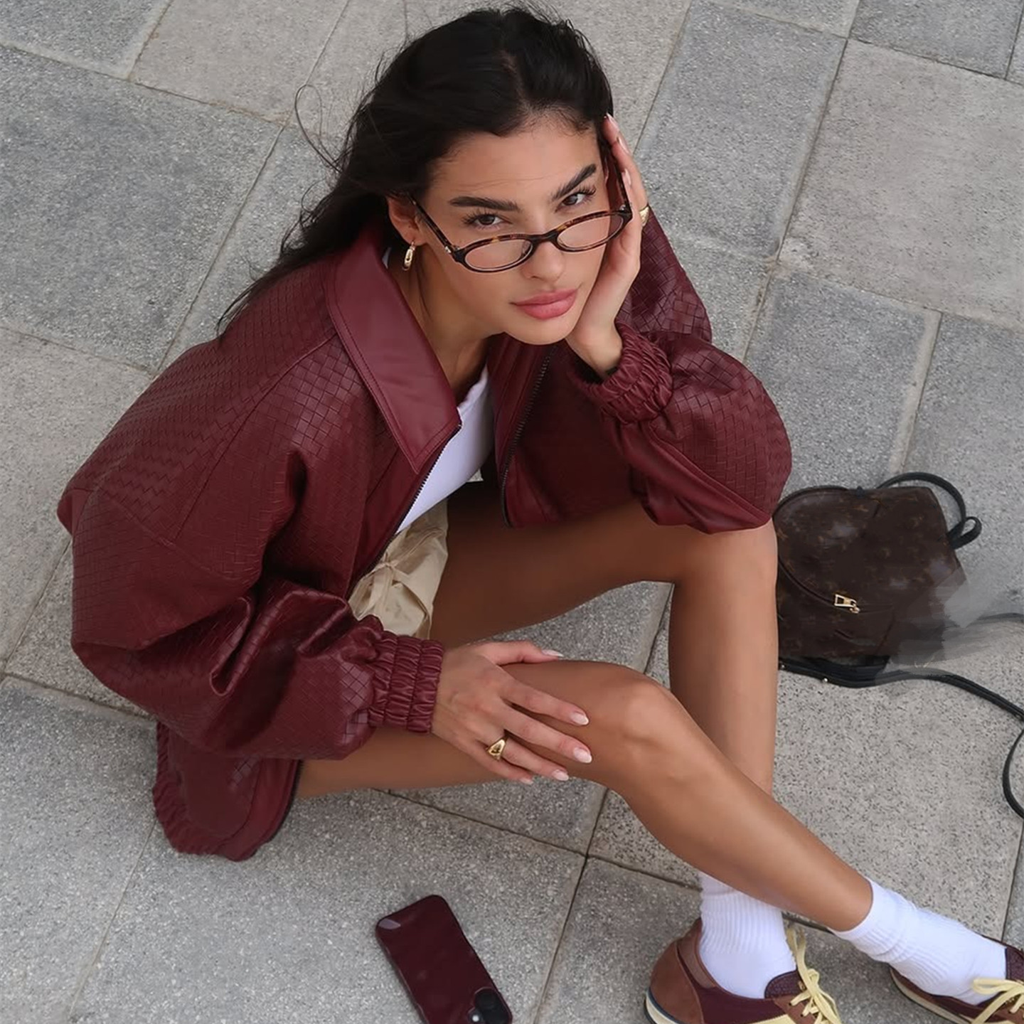 Embrace bold street style with Wcoumq’s retro woven PU leather jacket for women, designed to capture the essence of American hot girl fashion. Featuring a stylish zipper and classic lapel collar, this jacket exudes confidence and sophistication. The woven leather texture adds a unique vintage touch, making it a standout piece for autumn and winter wardrobes. Perfect for layering over any outfit, it pairs beautifully with jeans, skirts, or dresses, making it ideal for both casual outings and trendy events. Stay warm, stylish, and effortlessly cool this season with this must-have leather jacket.