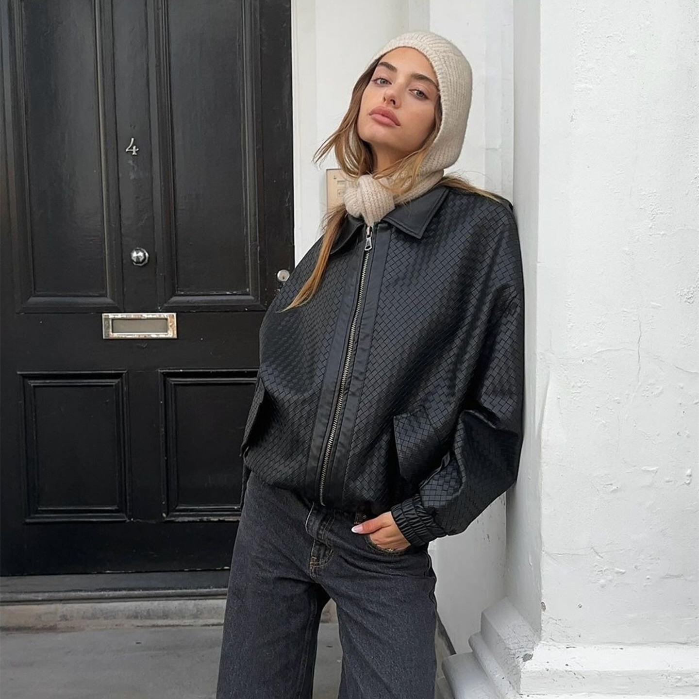 Wcoumq | Retro Woven PU Leather Zipper Lapel Jacket for Women – American Street Hot Girl Style Autumn & Winter Fashion