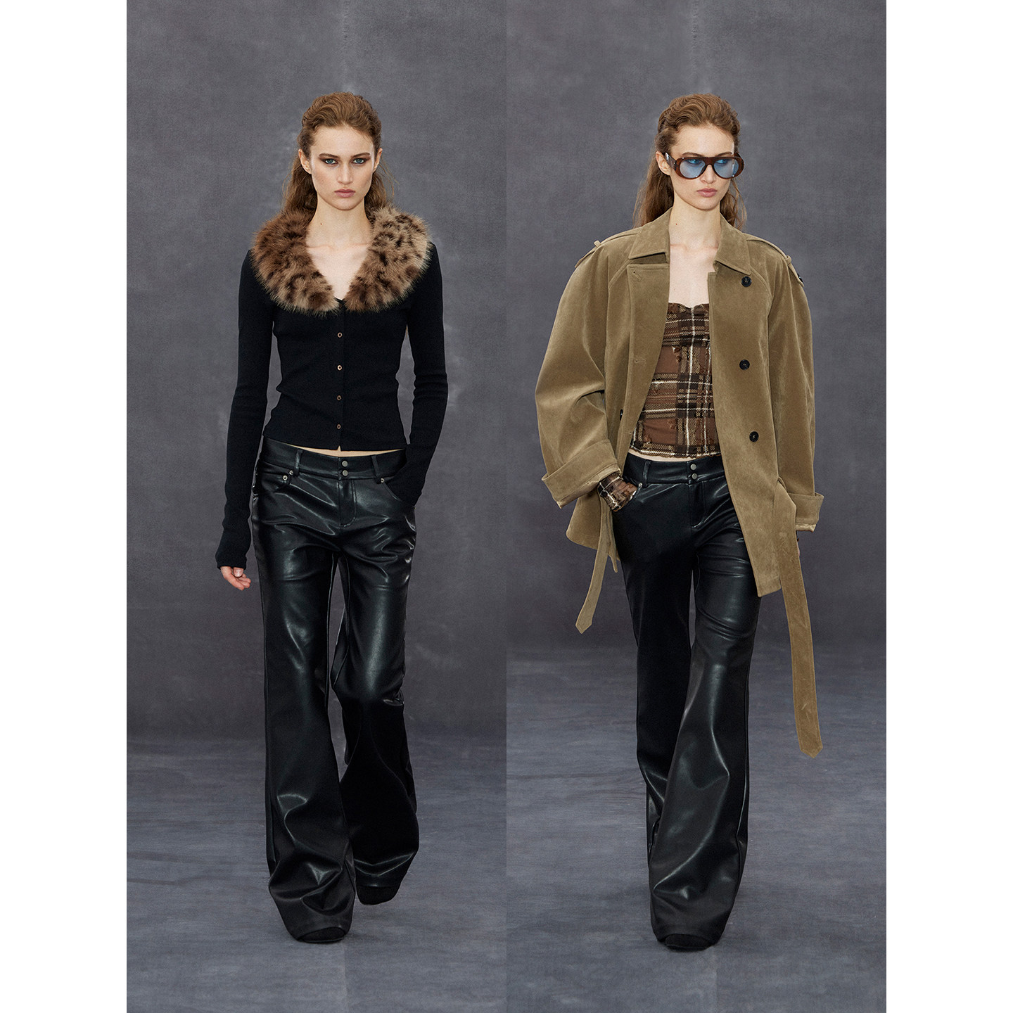 Wcoumq | Retro Low-Waisted Slightly Flared Straight Wide-Leg Leather Pants – Casual & Fashionable American Style