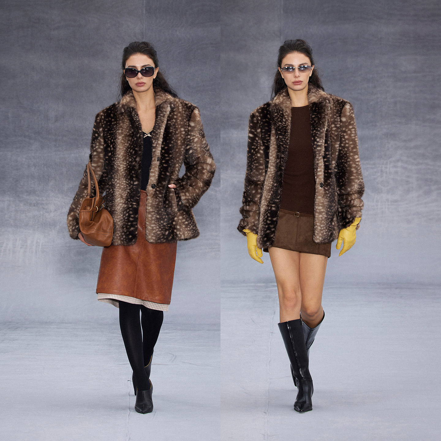 Wcoumq | Retro Fawn Pattern Fur One-Piece Suit for Women – Stylish and Cozy Retro Outerwear