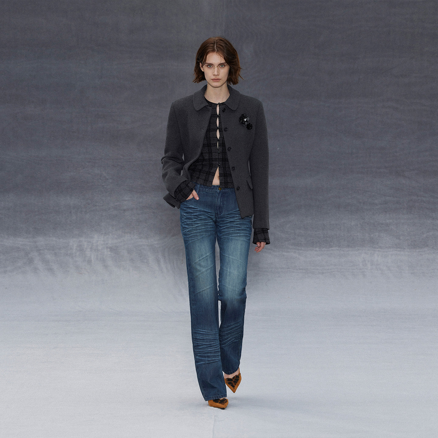 Wcoumq | Touch Series Round Neck Jacquard Flocked Knitted Short Cardigan – Women’s Cozy Knit Sweater