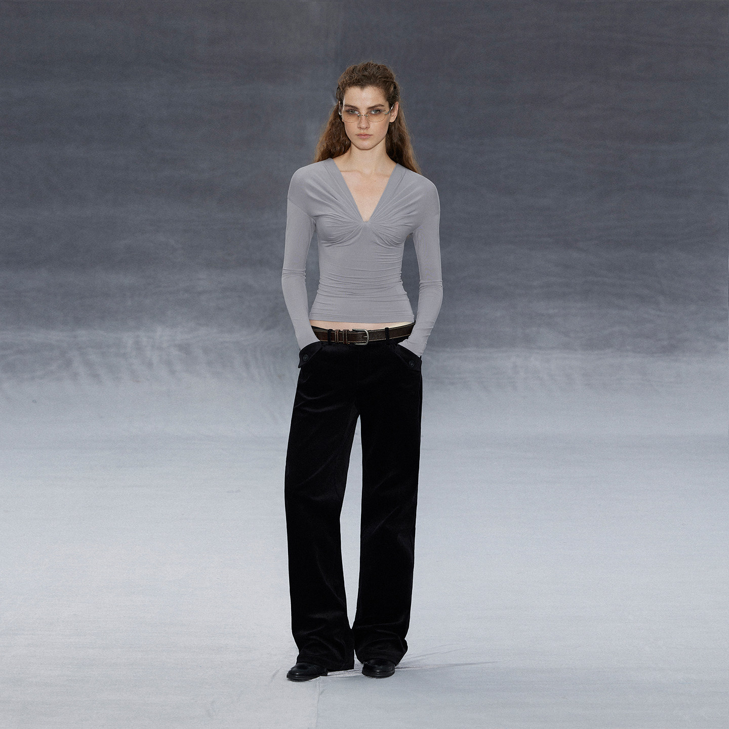 Wcoumq | V-Neck Pleated Slim Knitted Pullover Top for Women – Casual Touch Series Slim-Fit Knitwear